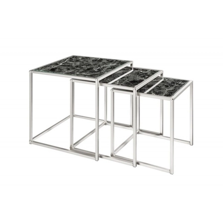 INVICTA zestaw stolików ELEMENTS 3 czarne szkło - imitacja marmuru