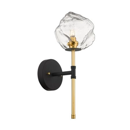 Rock to seria lamp imitujących złoto, kamienie i lód. Kinkiet Zuma Line W0488-01D-SEAC to źródło światła o niebanalnej budowie. Przyciąga spojrzenia emitując światło na zwór zimowych promieni słonecznych. Szklany klosz lampy kopiuje najbardziej charakterystyczne cechy lodu - nierównomierną powierzchnię i krystaliczne wnętrze. Lampa sprawdzi się jako oświetlenie korytarzy i jako uzupełniający element dekoracji ścian. W zestawie brak żarówki.