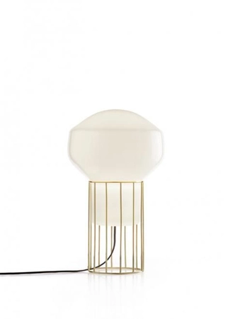 Lampy z serii Aerostat charakteryzuje narzucony przez projektanta Guillaume Delvigne'a nowoczesny wygląd. Lampa stojąca ma harmonijną konstrukcję, która jest pożądana w statycznych pomieszczeniach, np. w gabinecie. Szkło w połączeniu z mosiądzem świetnie prezentuje się na biurkach i stolikach. Źródłem światła w lampie jest żarówka E14, a klasa szczelności IP20 skutecznie chroni przed drobnymi zabrudzeniami.