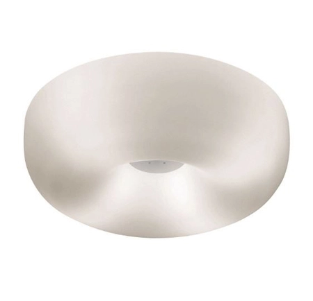 Jedna z najwybitniejszych projektantek młodego pokolenia - Defne Koz postanowiła zrobić projekt zupełnie inny, niż jej wcześniejsze dzieła. Nowoczesna lampa sufitowa Foscarini Circus grande w kolorze białym to przede wszystkim prosta forma. Foscarini Circus grande jest projektem opartym na dmuchanym szkle, ale centrum lampy to niklowany, lub powlekany metal. Swój potencjał najlepiej wykorzystuje w salonach, ale równie dobrze może zostać użyta jako oświetlenie korytarza, lub jadalni. Lampa sufitowa Foscarini 0460081-11 Circus grande występuje w dwóch rozmiarach i jednej wersji kolorystycznej. Dostępna jest także jako lampa ścienna. Żarówka jest sprzedawana oddzielnie.