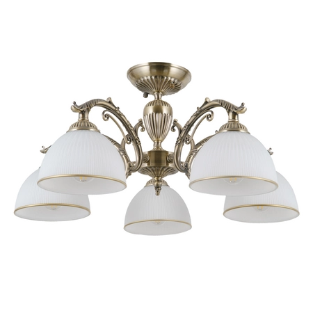 Lampa sufitowa Italux PND-5122-5 Feneza to klasycznie wykonana lampa ze stali, aluminium i szkła. Uchwyty w kolorze antycznego brązu nadadzą wyrafinowanego wyglądu każdemu wnętrzu – salonom, gabinetom, jadalniom, a także gabinetom i powierzchniom sklepowym. Żarówki nie są dostępne w zestawie i należy je dokupić.