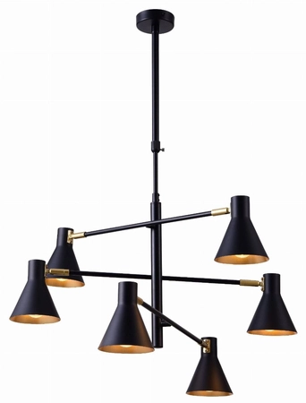 Lampa wisząca Candellux 36-72696 Less to część eleganckiej serii lamp Candelluxa w zmysłowej kolorystyce łączącej czerń ze złotem. Metalowe klosze z mocowaniami E14 można regulować w dwóch płaszczyznach osiągając różne kąty świecenia. W sprzedaży bez żarówek.