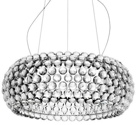 Eliana Gerotto i Patricia Urquiola z lampy wiszącej Foscarini Caboche w kolorze srebrnym stworzyły prawdziwe dzieło sztuki. Kryształowy design klosza zachwyca, a inpiracją do stworzenia tej lampy była dla projektantek bransoletka z błyszczących przezroczystych pereł. Owe perły wsparte zostały eleganckim i lekkim zawiesiem, a całość idealnie prezentuje się w otoczeniu salonowych dzieł sztuki, ale także w zaciszu domowej sypialni. Lampa wisząca Foscarini 138017-16 Caboche jest dostępna w dwóch kolorach oraz w dwóch rozmiarach. Występuje również jako lampa stołowa, podłogowa i sufitowa, które także posiadają szeroką gamę rozmiarów i kolorów. Żarówka jest sprzedawana oddzielnie.