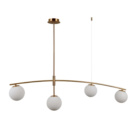 Designerska lampa wisząca w kolorze miodowo-mosiężnym wyprodukowana ze stali, aluminium i szkła. Italux PND-31322-4-HB Senai charakteryzuje się nieskomplikowaną, ale nowoczesną konstrukcją. Lampa składa się z dwóch przecinających się prostopadle ram oraz czterech źródeł światła - każdy posiadający jeden gwint G9 dla żarówki o maksymalnej mocy 5W. Dzięki swojemu oryginalnemu kształtowi Italux PND-31322-4-HB Senai jest lampą, która perfekcyjnie sprawdzi się w nowoczesnym wnętrzu. Co więcej, Italux Senai wybornie spisze się w roli oświetlenia sypialni, jadalni, kuchni, salonu, a także gabinetu. Oprawa sprzedawana bez żarówek.