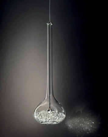 Designerska lampa wisząca Sillux SP7-276-B-30 Graal charakteryzuje się nowoczesnym kształtem klosza. Zwis lampy jest regulowany. W środku lampy umieszczone zostały szklane kryształki, które są doskonałym elementem dekoracyjnym. Lampa sprawdzi się w salonie lub sypialni. Mocowanie GY 6.35. Żarówka do lampy Sillux SP7-276-B-30 Graal sprzedawana jest oddzielnie.