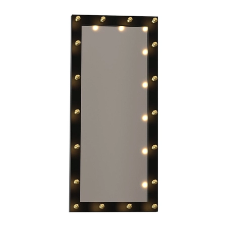 Poza 18 żarówkami umieszczonymi na prostokątnej, czarnej ramie ma również lustro.