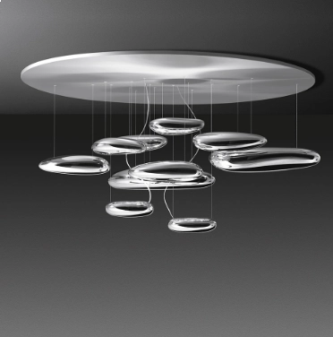 Designerski plafon Artemide Mercury charakteryzuje się przede wszystkim niecodziennym sposobem świecenia. Lampa sufitowa zachwyca swoim designem, ale to właśnie zastosowana metoda oświetlenia zwraca na siebie szczególną uwagę. Przypominające krople rtęci źródła światła emitują oświetlenie, które odbija się od podstawy i tworzy niesamowity efekt oświetlenia w całym pomieszczeniu. Lampa Artemide Mercury występuje również w większej wersji Mercury Mini LED. Zestaw nie zawiera żarówek.