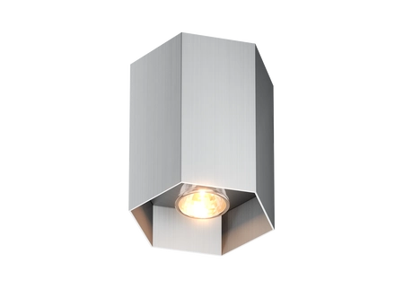 Lampa Zuma-Line model Polygon 1L Wall 20067-AL oferuje popularny gwint GU10 na żarówki 50W. Lekka aluminiowa forma w postaci bryły geometrycznej pomalowanej na srebrny kolor– może stanowić praktyczny i ciekawy akcent w budynku użyteczności publicznej.