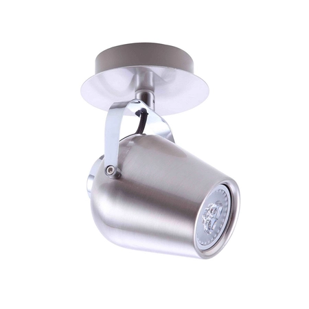 Elegancki spotlight wykonany przy użyciu stopu metali o barwie satynowanego niklu. Italux FH541A1BJ Josie odznacza się futurystyczną konstrukcją, na którą składa się okrągła podstawa oraz przymocowany do niej reflektor, który posiada jeden gwint GU10 dla żarówki o maksymalnej mocy 50W. Lampa dzięki swojemu oryginalnemu designowi oraz barwie idealnie wkomponuje się w nowoczesną aranżację. Italux FH541A1BJ Josie spisze się w jadalni, kuchni, salonie oraz sypialni. Lampa świetnie sprawdzi się również w barze, restauracji oraz sklepie. Oprawa sprzedawana bez żarówek.