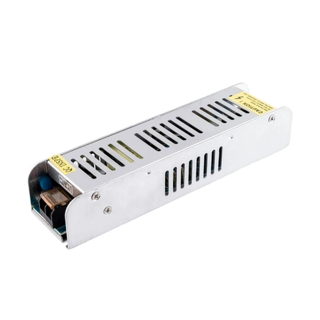 Zasilacz modułowy 120W stosowany jest w instalacjach oświetlenia LED. Zamienia wejściowe napięcie prądu przemiennego 230V na wyjściowe napięcie prądu stałego 12V. Pamiętajmy, aby łączna moc zasilanego oświetlenia nie przekraczała mocy nominalnej zasilacza!